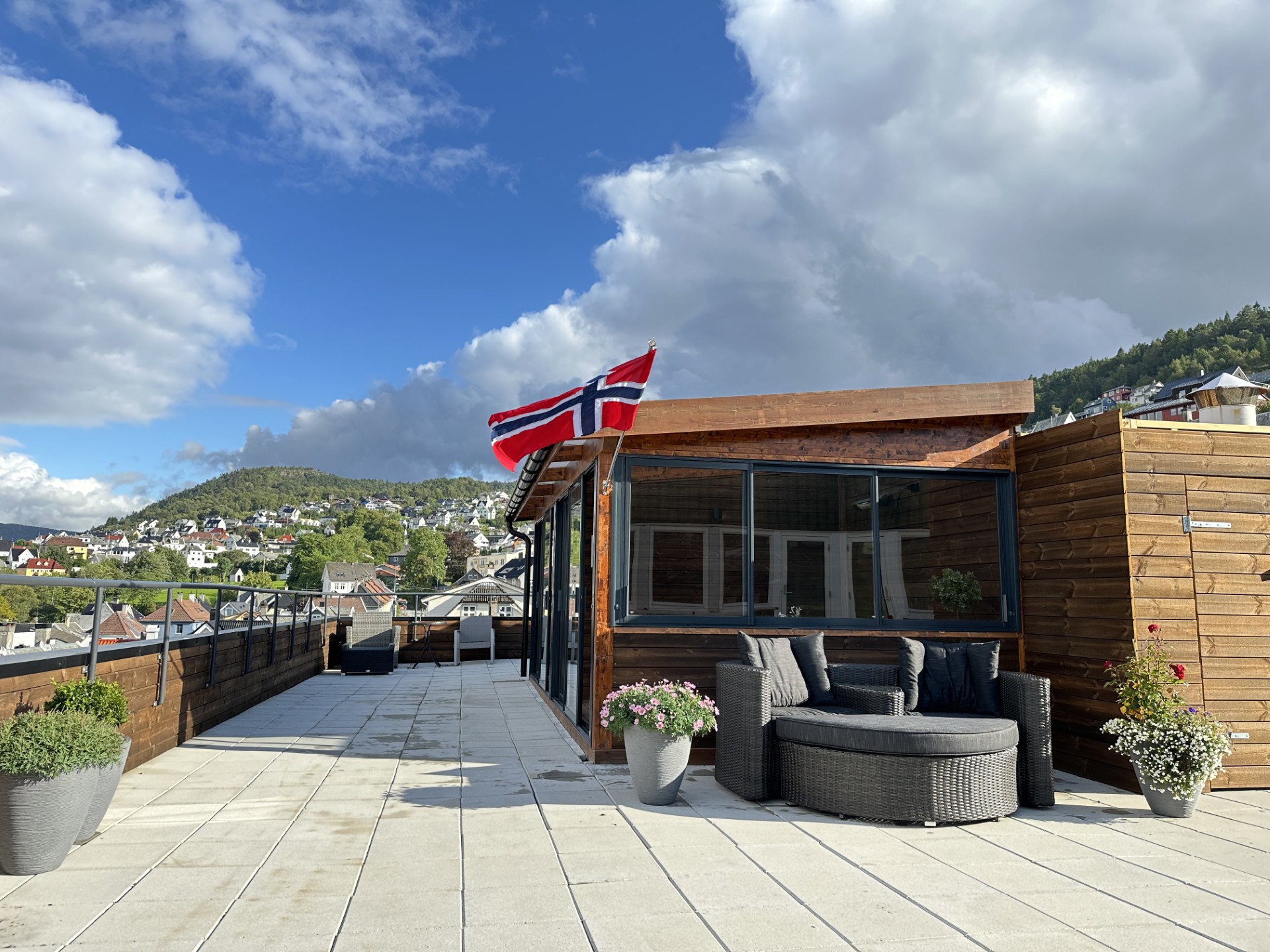 Takterrassen er et fellesareal, og andelseierne skal vise hensyn når den brukes, og den skal holdes ryddig.